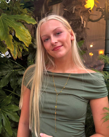 Delicate, elegant, and full of charm, the India Necklace is a refined and relaunched take on our beloved 2024 summer favourite. Featuring a flattering Y-shape silhouette and dainty chain adorned with colourful bezel-set stones, this piece is simple with a statement and the perfect accessory to your outfit.