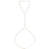 Crafted from stainless steel with an 18k PVD gold finish, it features a fine chain set with evenly spaced bezel set stones from neck to waist. The design flows from a choker-style top into a central drop, connecting to a full waist chain for a flattering, easy fit. Fully adjustable and available in all of our iconic colours.
