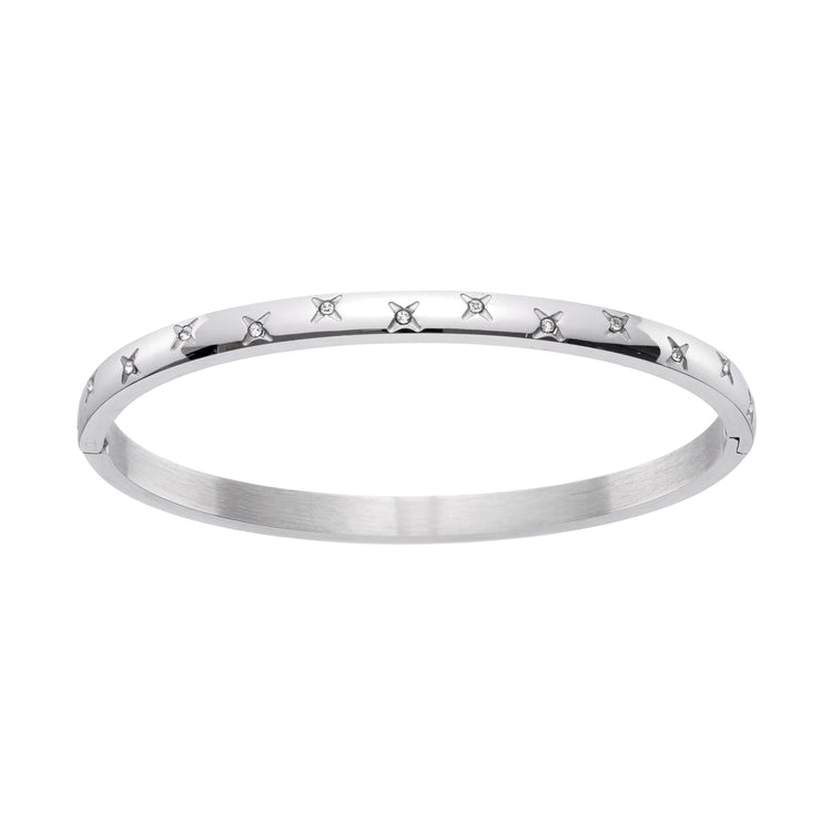 Meet the Amelia Bangle, featuring delicate all-over star engravings, each accented with a sparkling gemstone for just the right amount of shine. With a new and improved all round clasp. Crafted from 18k PVD electroplated stainless steel, it’s water-resistant, hypoallergenic, and built for long wear without fading or tarnishing.