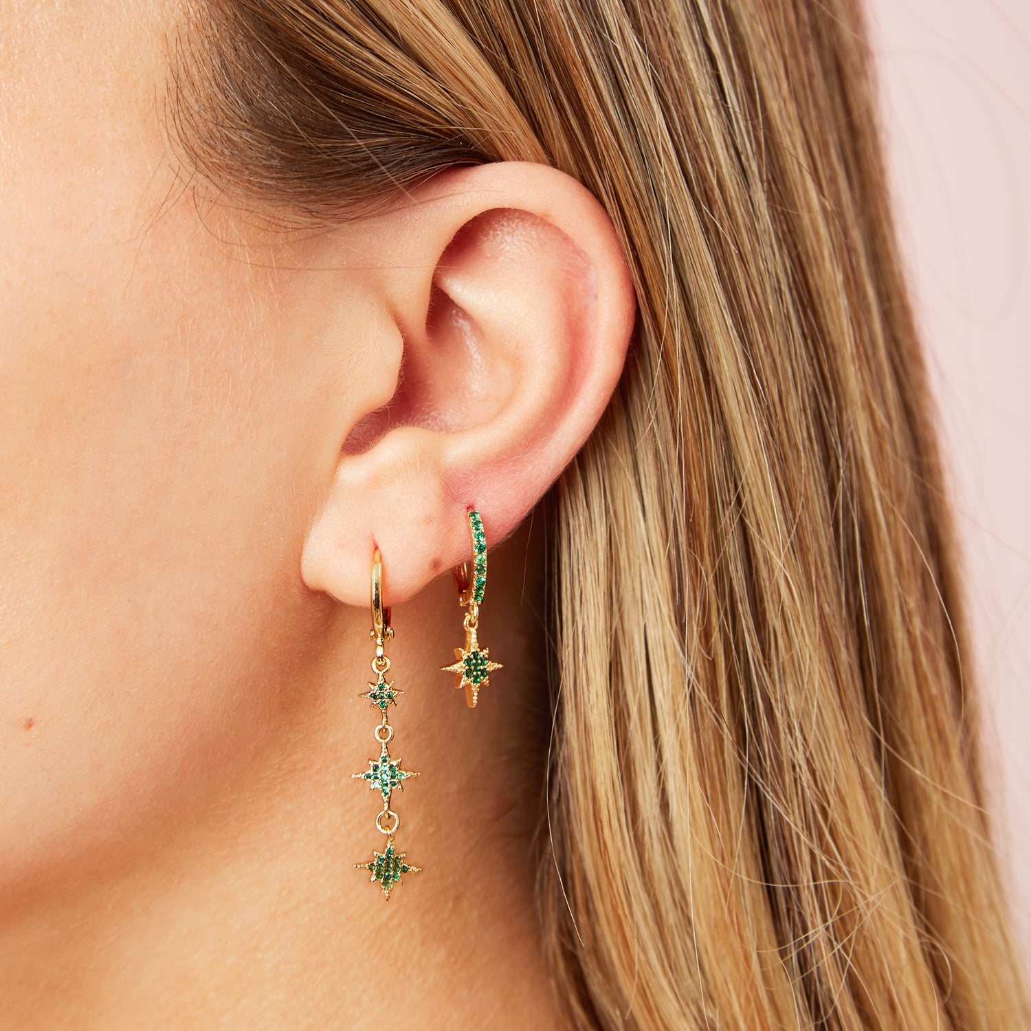 Cosima Green Gold Star Huggie Earrings