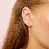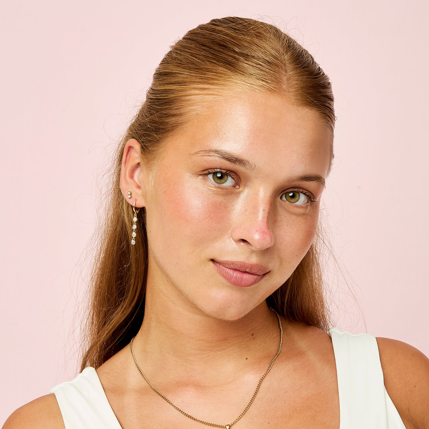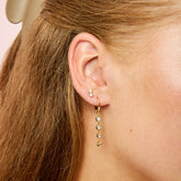 The Ellica Droplet Huggie Earring is one of our iconic best sellers, loved for its sleek design and subtle shine. Featuring a smooth gold huggie with five bezel-set crystals that drop gently in a row, it adds movement and a hint of colour to your look.
