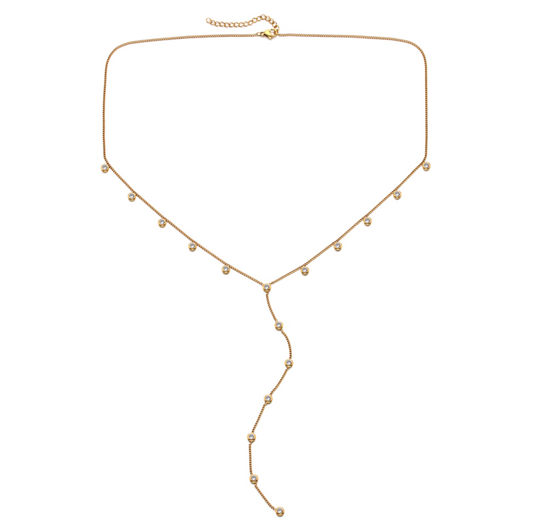 Delicate, elegant, and full of charm, the India Necklace is a refined and relaunched take on our beloved 2024 summer favourite. Featuring a flattering Y-shape silhouette and dainty chain adorned with colourful bezel-set stones, this piece is simple with a statement and the perfect accessory to your outfit.