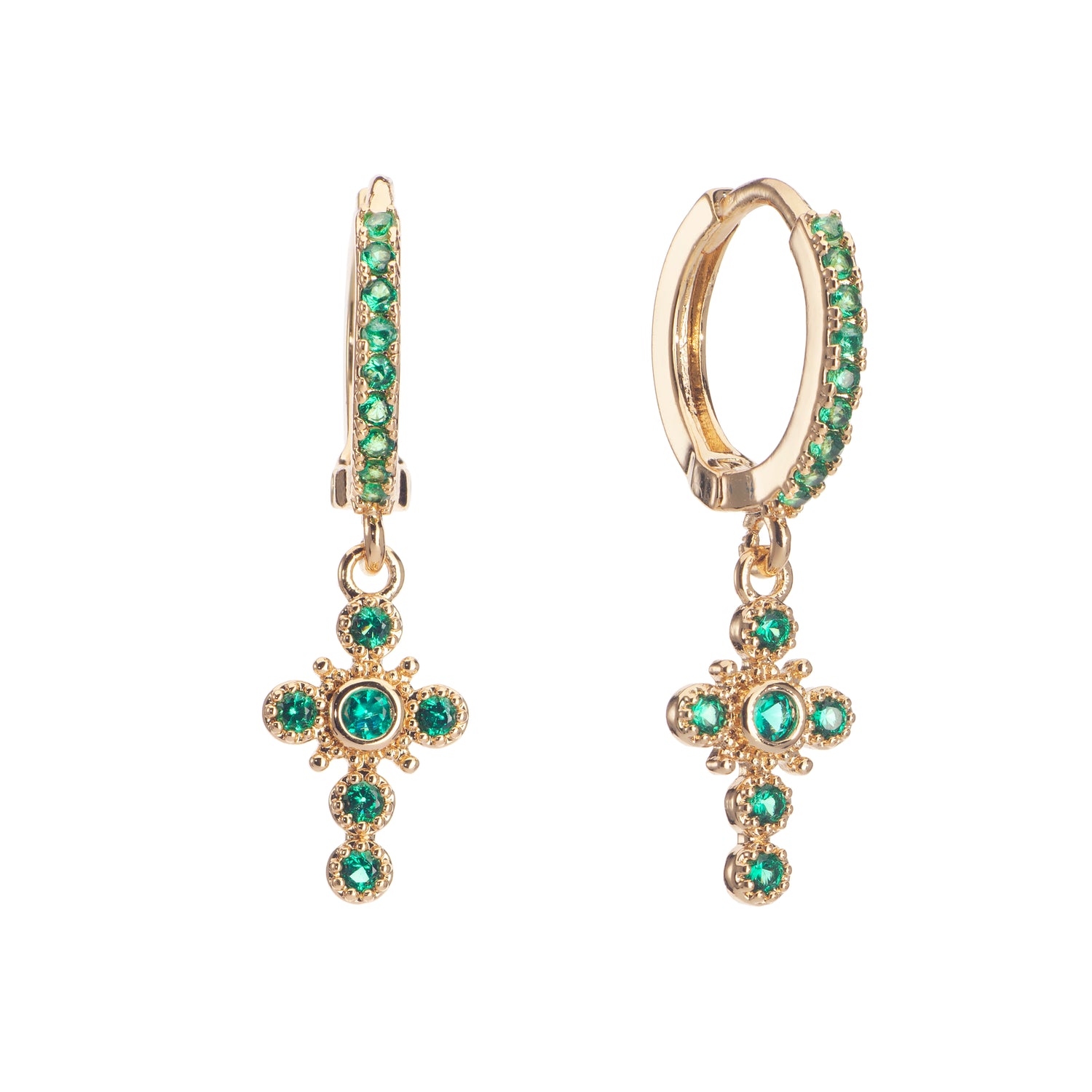 Isabella Green Gold Cross Huggie Earrings