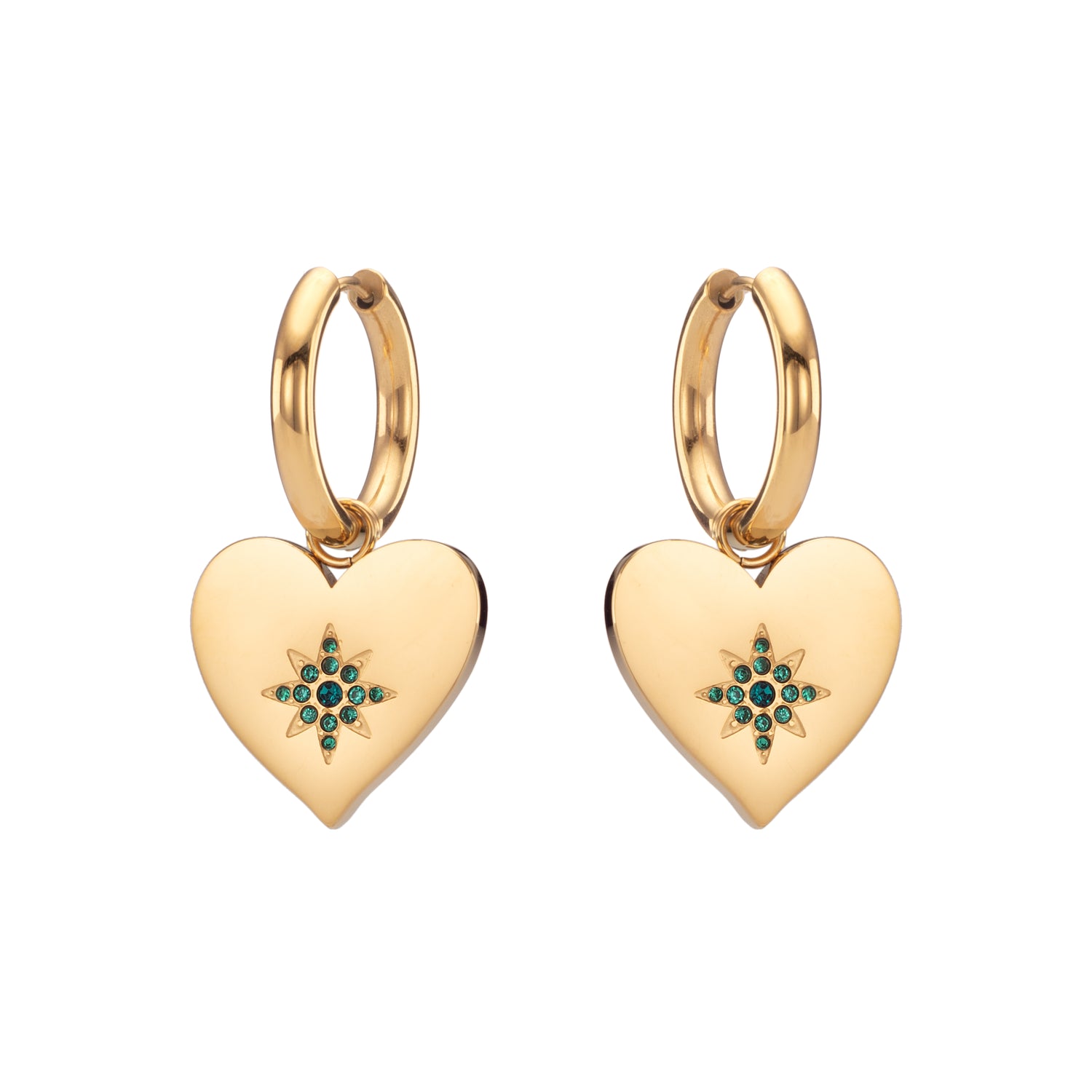 Lucinda Gold Green Chunky Heart Hoop Earrings