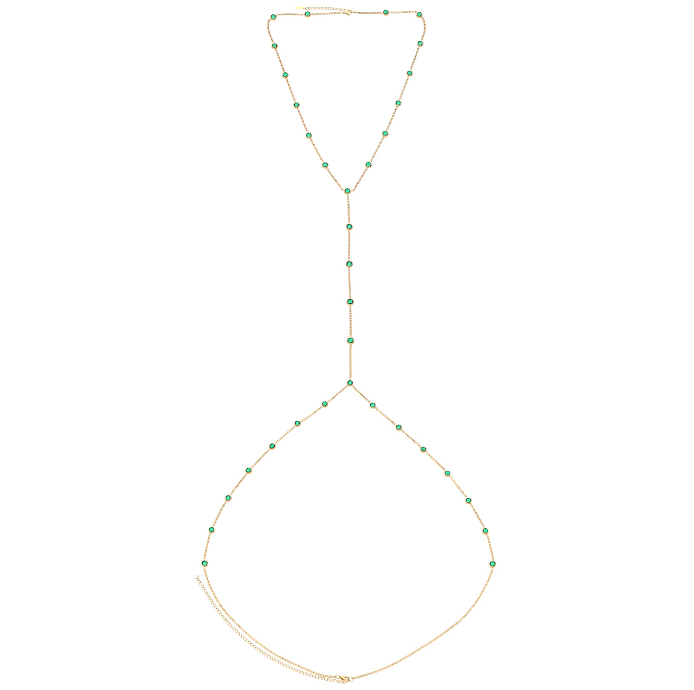 Crafted from stainless steel with an 18k PVD gold finish, it features a fine chain set with evenly spaced bezel set stones from neck to waist. The design flows from a choker-style top into a central drop, connecting to a full waist chain for a flattering, easy fit. Fully adjustable and available in all of our iconic colours.