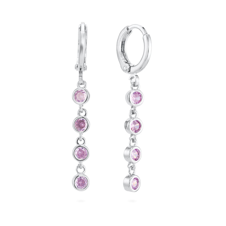 Ellica Pink Silver Droplet Huggie Earrings