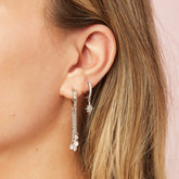 One of our best sellers, the Cosima Huggie Earrings are a cosmic-inspired favourite. Each huggie is lined with sparkling stones and finished with a star-shaped drop charm, detailed with a cluster of crystals that shimmer with every movement.