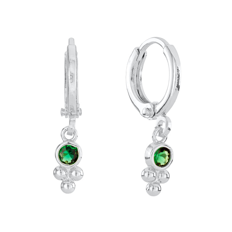 Trinity Silver Green Gem Droplet Huggie Earrings