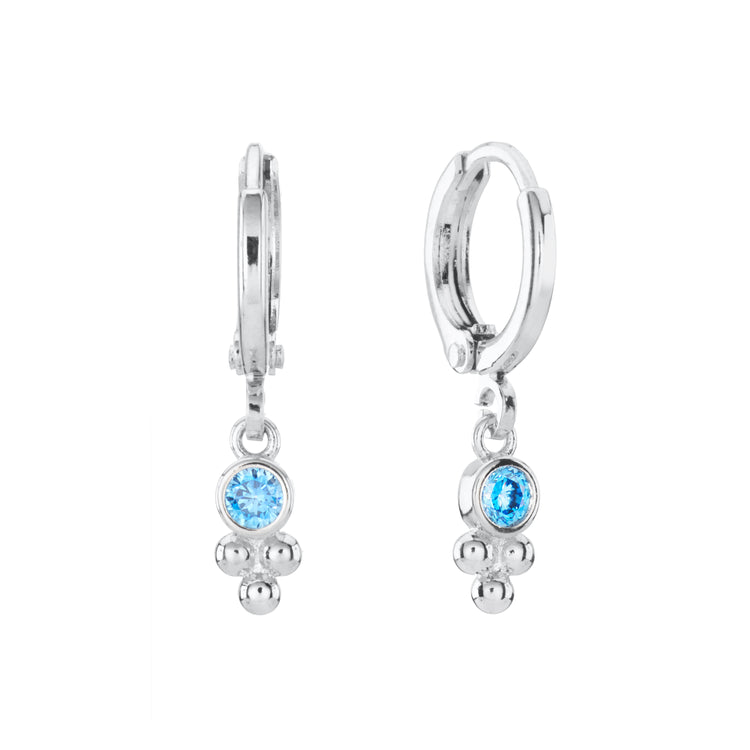 Trinity Silver Turquoise Gem Droplet Huggie Earrings