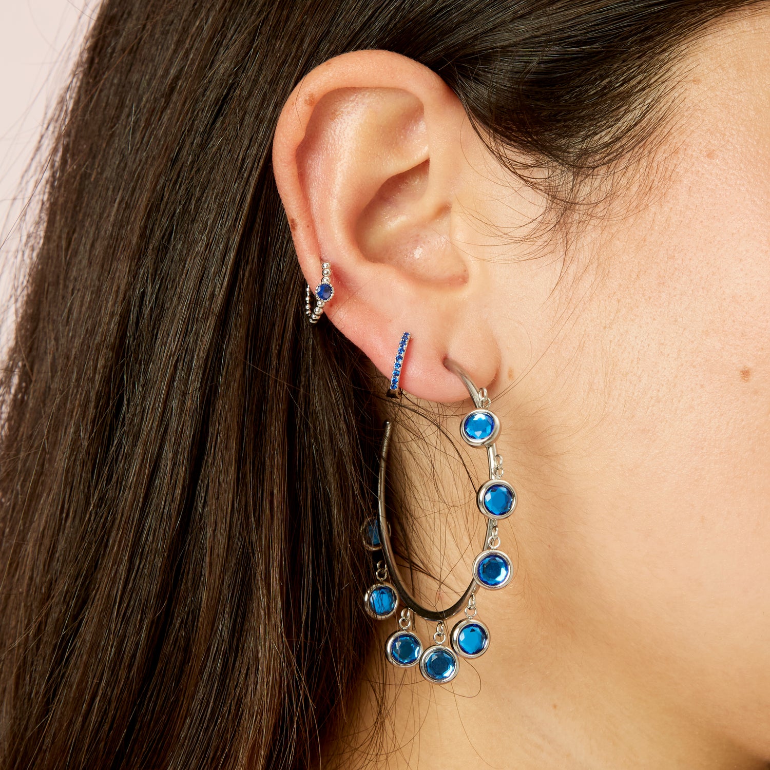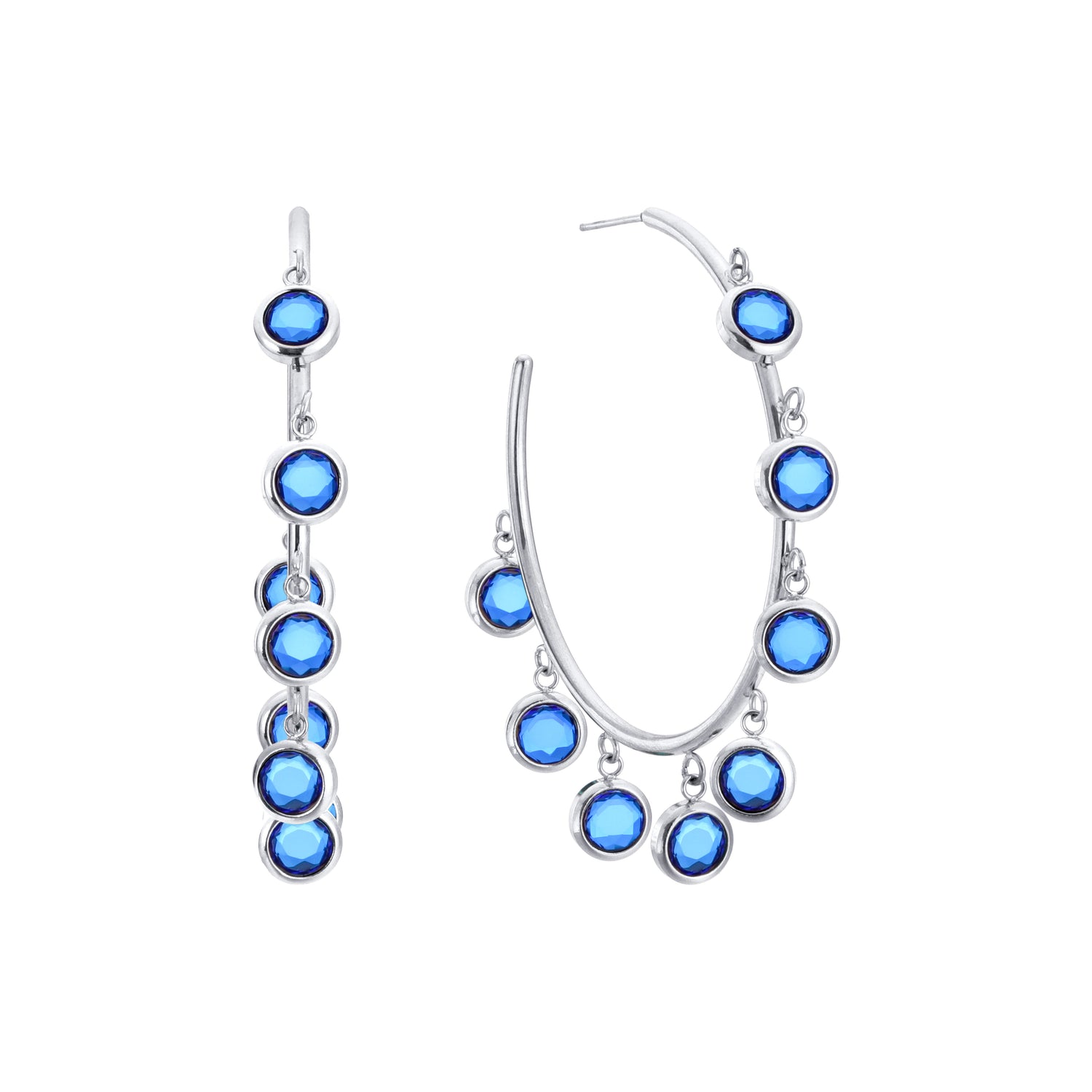 Faiza Droplet Statement Hoops Blue & Silver