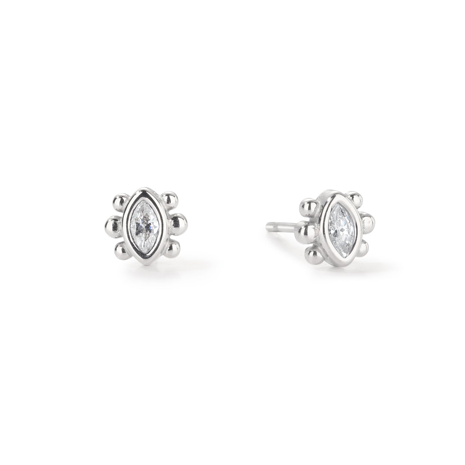The stud is adorned with a sparkling stone at the centre, set in a sleek gold/ silver-tone bezel, with unique and delicate gold ball details on each side. Perfect on their own or layered with other studs for a more styled look, the Francesca studs are a timeless addition to your jewellery collection.