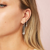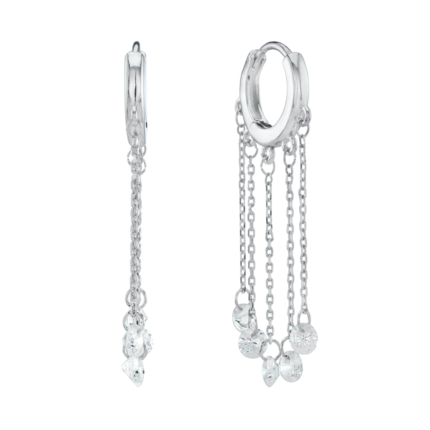 The Alisa Huggie Earrings bring movement and sparkle to your everyday look. Designed with a sleek gold finish, each huggie features delicate dangling chains finished with small crystal drops that catch the light beautifully as you move.