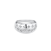 The Isabel Star Ring is a bold yet elegant statement piece designed to stand out. Featuring a smooth domed band scattered with star-shaped settings, each accented by a delicate stone, this ring brings a touch of celestial charm to your everyday style.