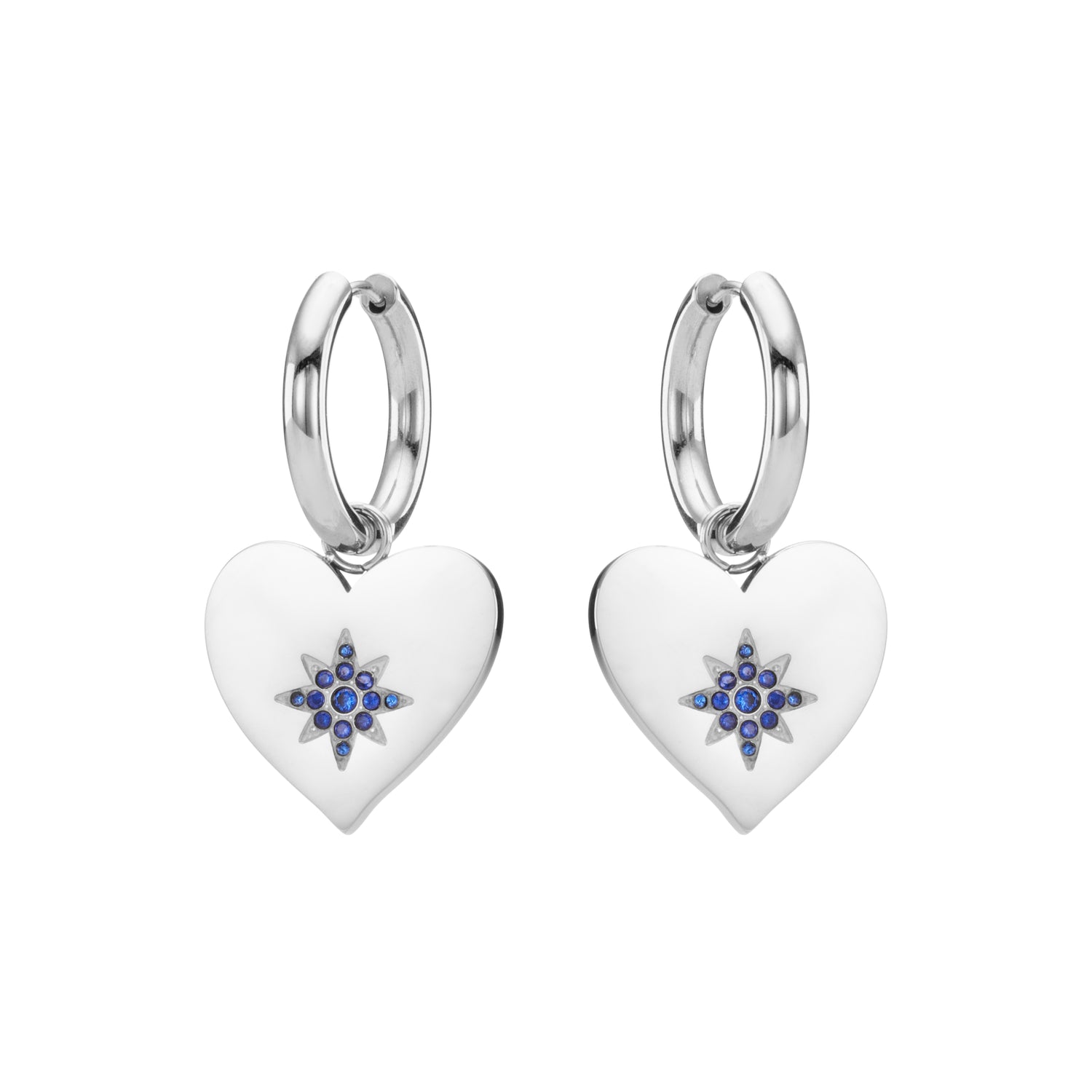 Lucinda Silver Blue Chunky Heart Hoop Earrings