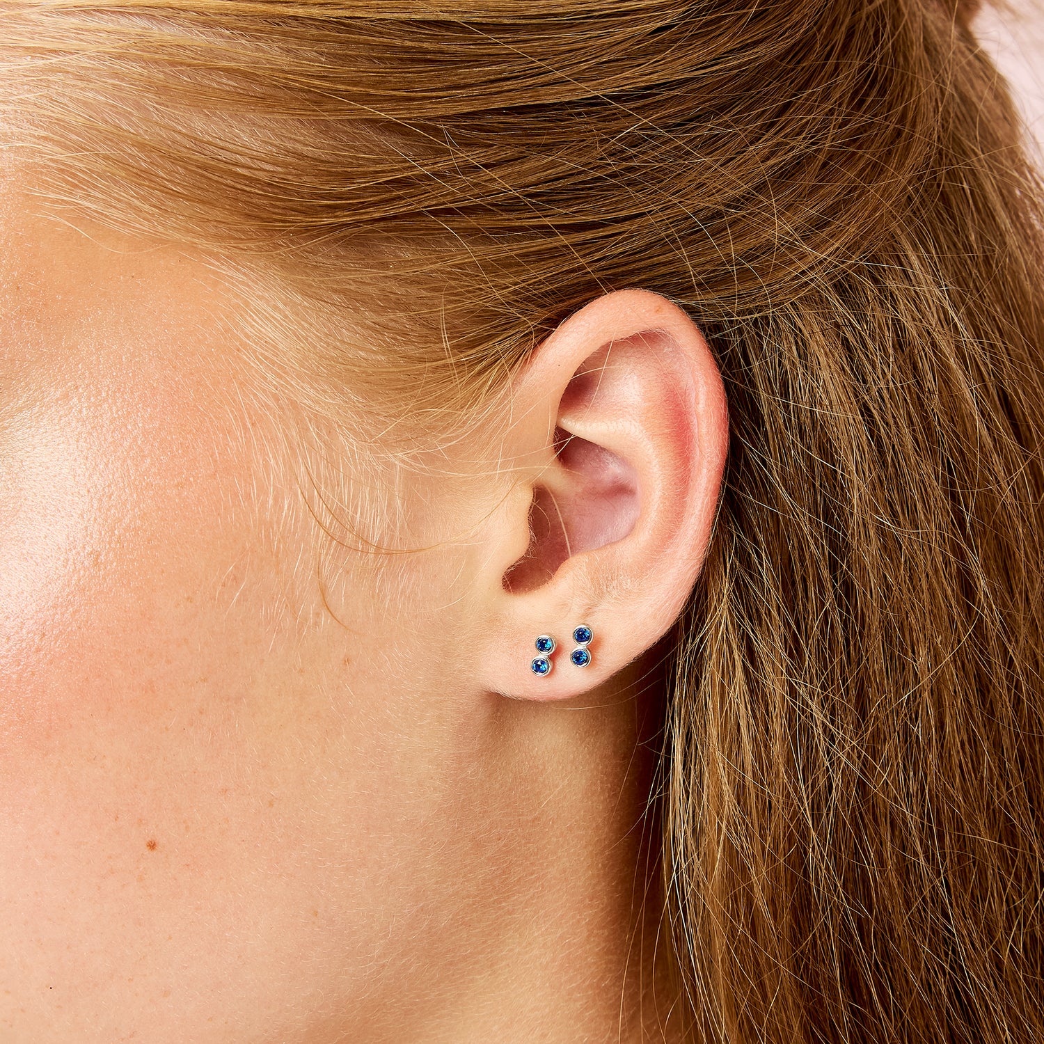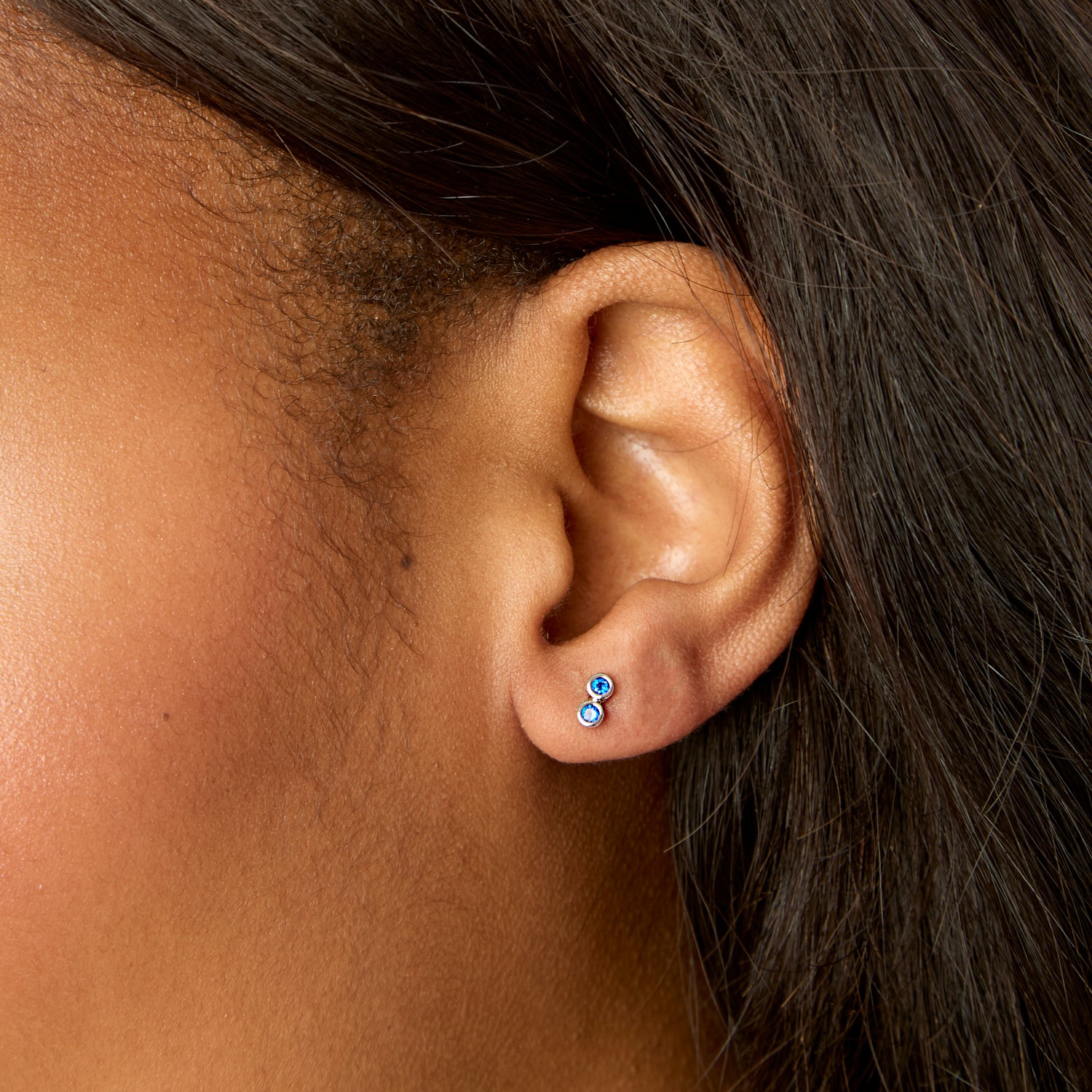 Each stud features two bezel-set stones stacked vertically, creating a clean and modern silhouette that catches the light with every movement. Understated yet eye-catching, these studs are perfect worn alone or layered with other pieces for a polished, versatile look.