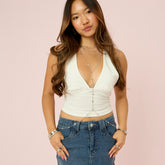 Crafted from stainless steel with an 18k PVD gold finish, it features a fine chain set with evenly spaced bezel set stones from neck to waist. The design flows from a choker-style top into a central drop, connecting to a full waist chain for a flattering, easy fit. Fully adjustable and available in all of our iconic colours.