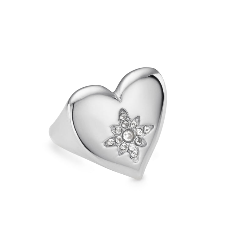 The Ruby Heart Ring is a bold expression of love and style, featuring a sculpted heart design brought to life with a starburst of sparkling stones at its centre. Its smooth, polished finish and radiant detailing make it a standout piece with timeless appeal.