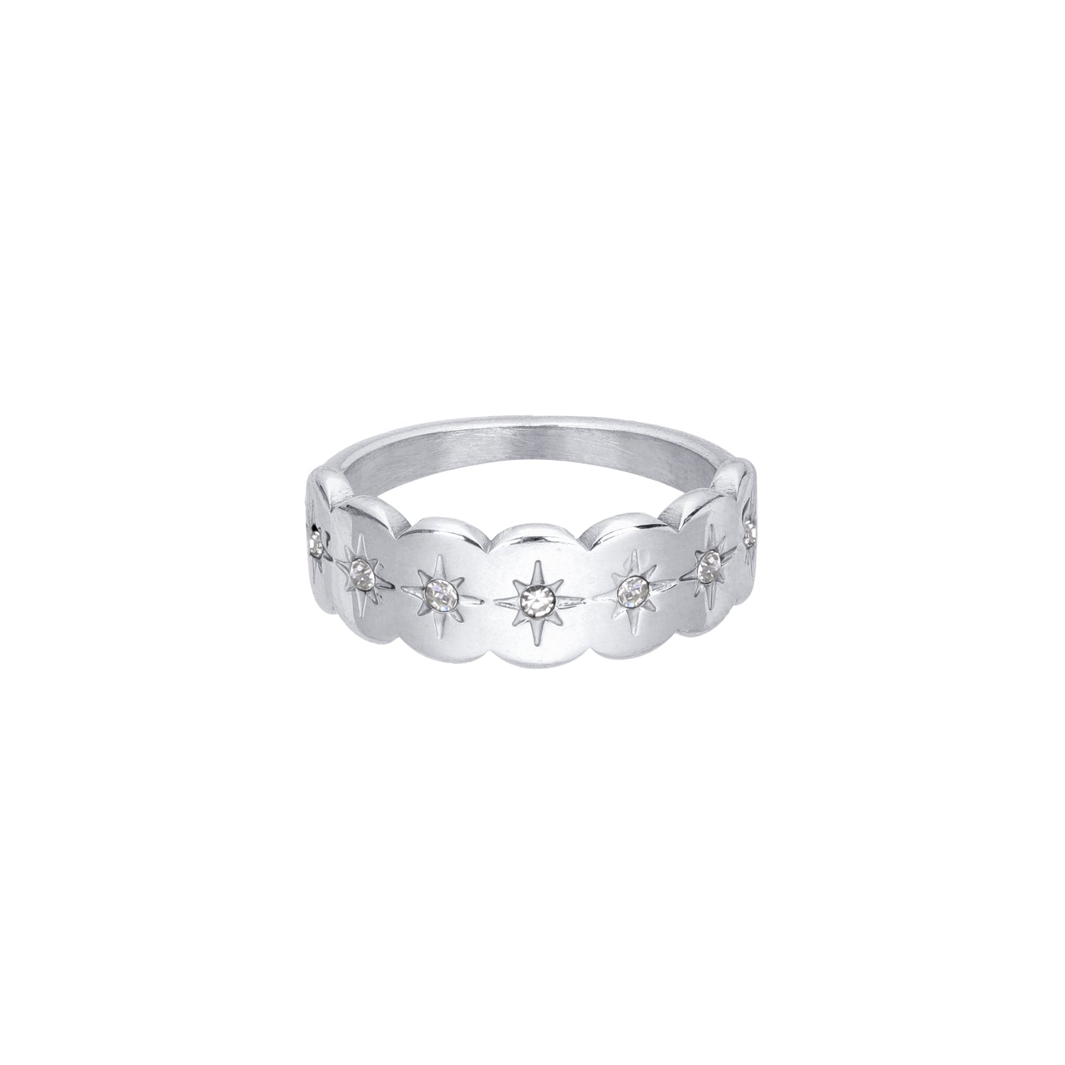Tallulah Silver Crystal Scallop Star Ring SIZE L