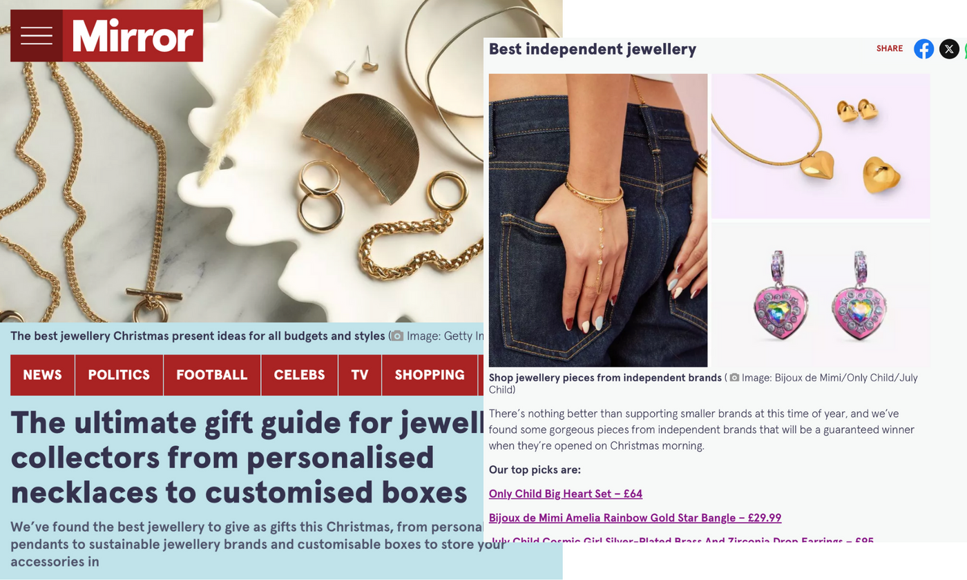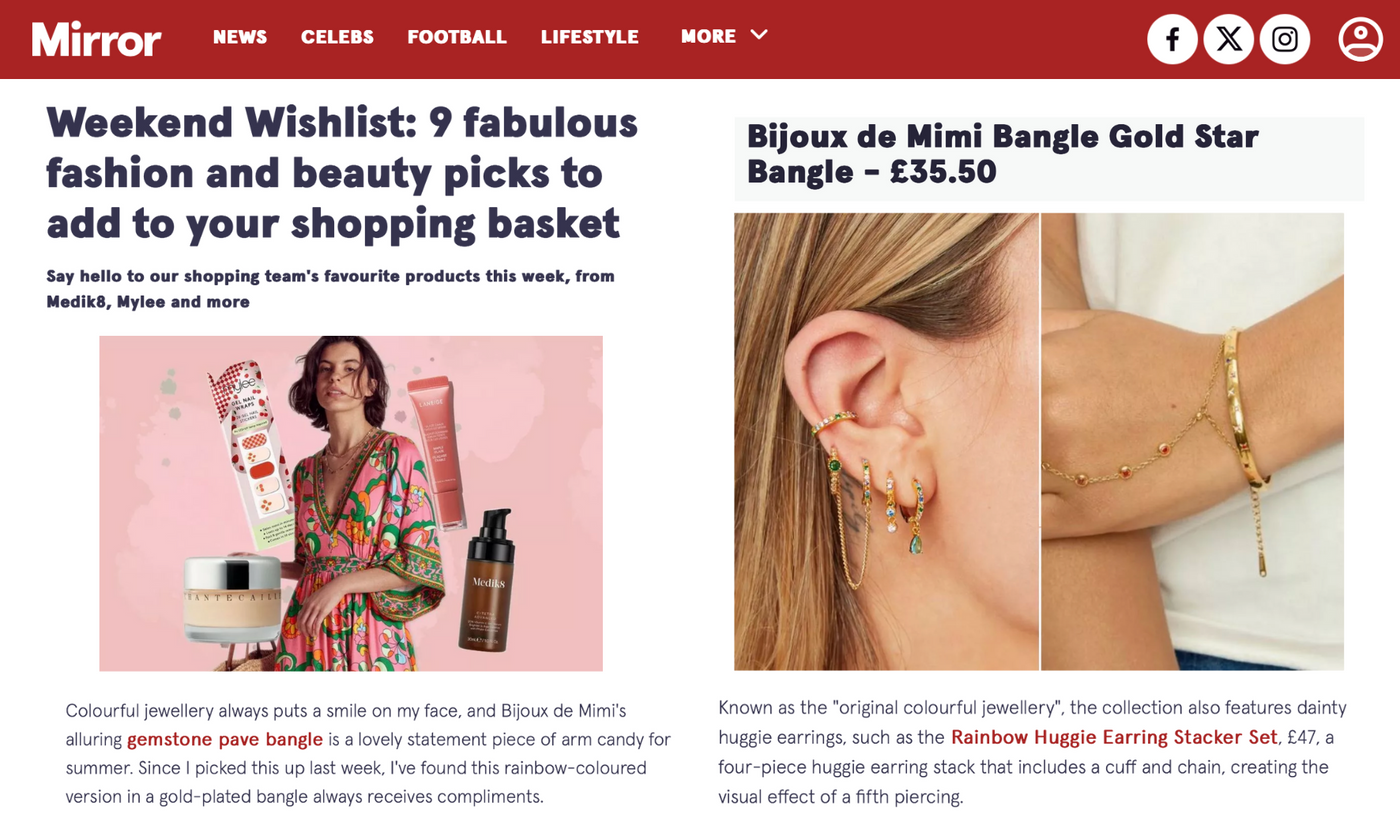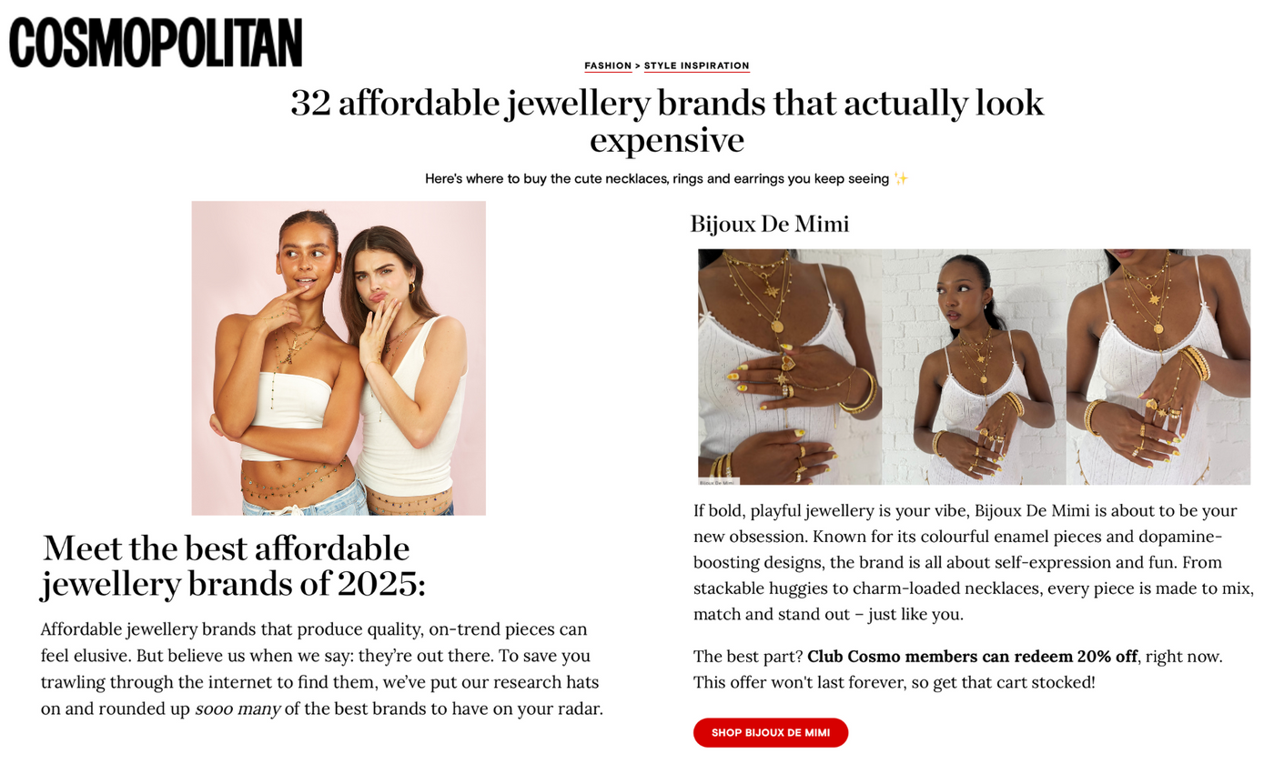 The love from the press has been unreal. The one-of-a-kind Bijoux Story has turned into something that editors genuinely connect with. Our young founder’s journey, authentic, ambitious, and completely unfiltered, has sparked a continued wave of organic coverage from some of the most incredible publications in the industry. Paired with pieces journalists can’t stop wearing, styling, and writing about, the momentum has felt natural, powerful, and entirely Bijoux De Mimi, something we couldn't be more grateful for.