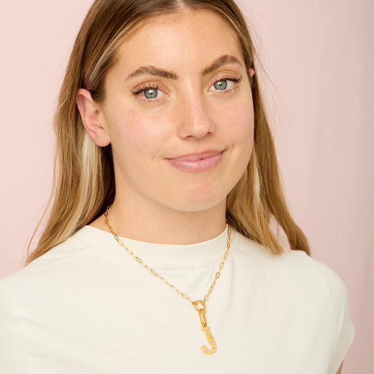 The Minnie Letter Charm adds a touch of sparkle to your everyday style. Made from 18k PVD-electroplated water-resistant stainless steel, each charm features a bold gold-tone letter, please see the letter selection above. The surface is set with tiny star-shaped engravings, each holding a clear stone that catches the light beautifully.