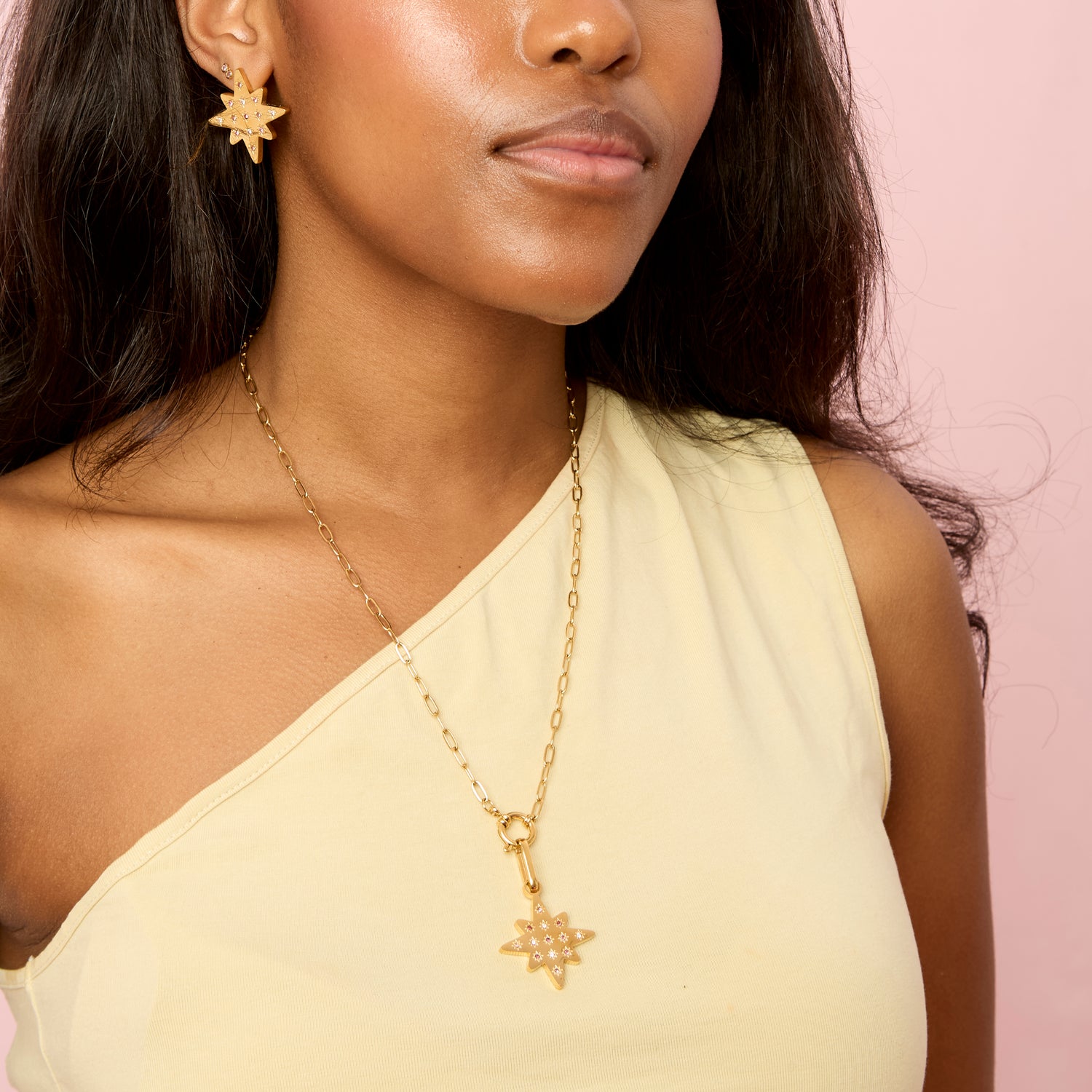 Whether worn solo or styled with the matching Kiki Studs and Willow Ring, the Aleena Star Pendant Charm is a luminous finishing touch for any look.