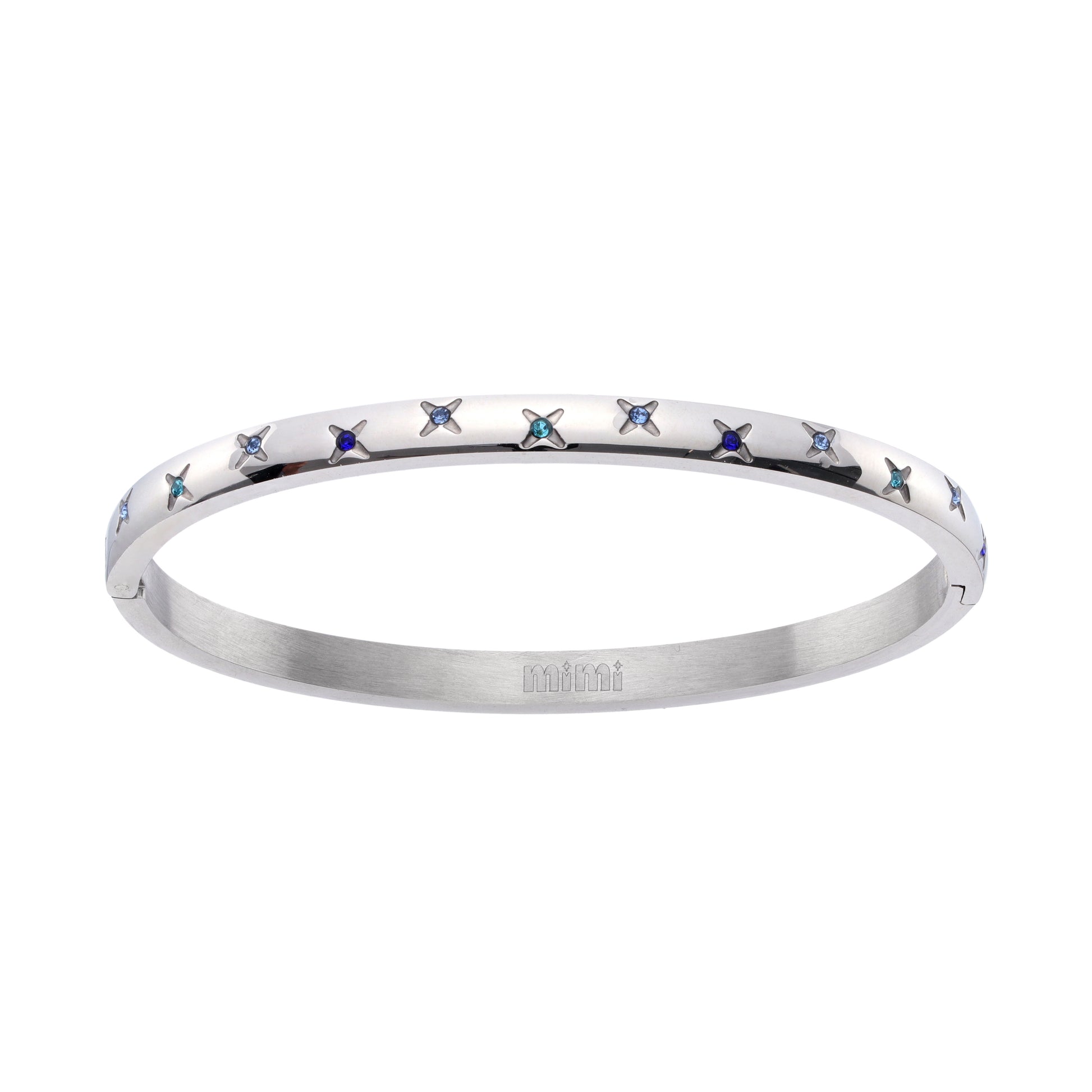 Meet the Amelia Bangle, featuring delicate all-over star engravings, each accented with a sparkling gemstone for just the right amount of shine. With a new and improved all round clasp. Crafted from 18k PVD electroplated stainless steel, it’s water-resistant, hypoallergenic, and built for long wear without fading or tarnishing.