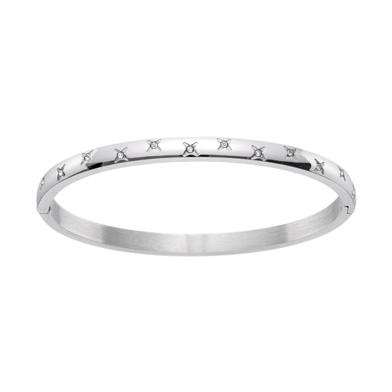 Meet the Amelia Bangle, featuring delicate all-over star engravings, each accented with a sparkling gemstone for just the right amount of shine. With a new and improved all round clasp. Crafted from 18k PVD electroplated stainless steel, it’s water-resistant, hypoallergenic, and built for long wear without fading or tarnishing.
