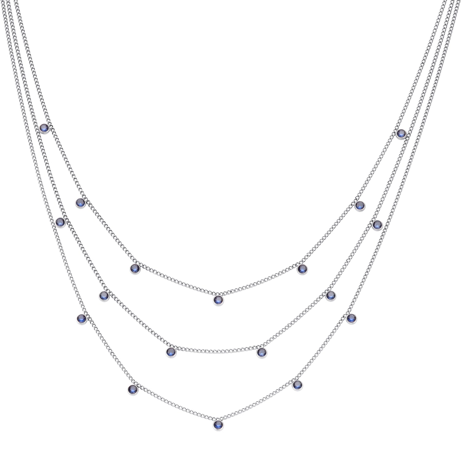 Made from stainless steel with an 18k PVD gold finish, it features three fine chains in one piece, each dotted with bezel set stones in our iconic colours. The chains are spaced to sit neatly layered, creating a full look with zero effort.