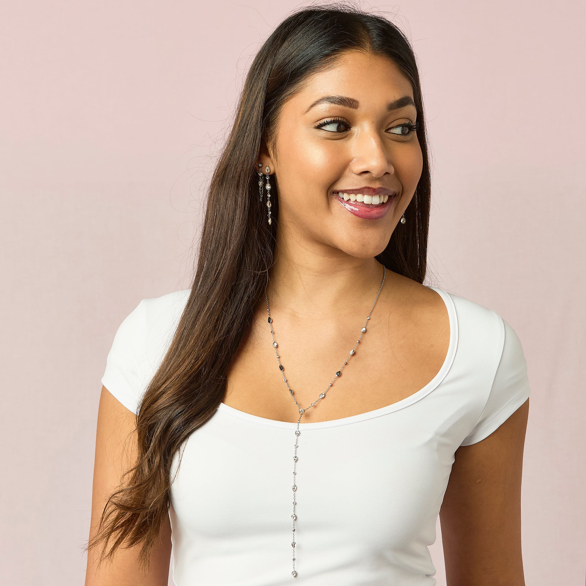 Araminta Crystal Silver Droplet Necklace