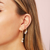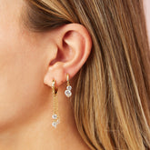 The Iris Waterfall Huggie Earrings bring movement and colour to your stack. Each huggie features four round-cut stones that hang delicately in a cascading drop, catching the light with every turn.