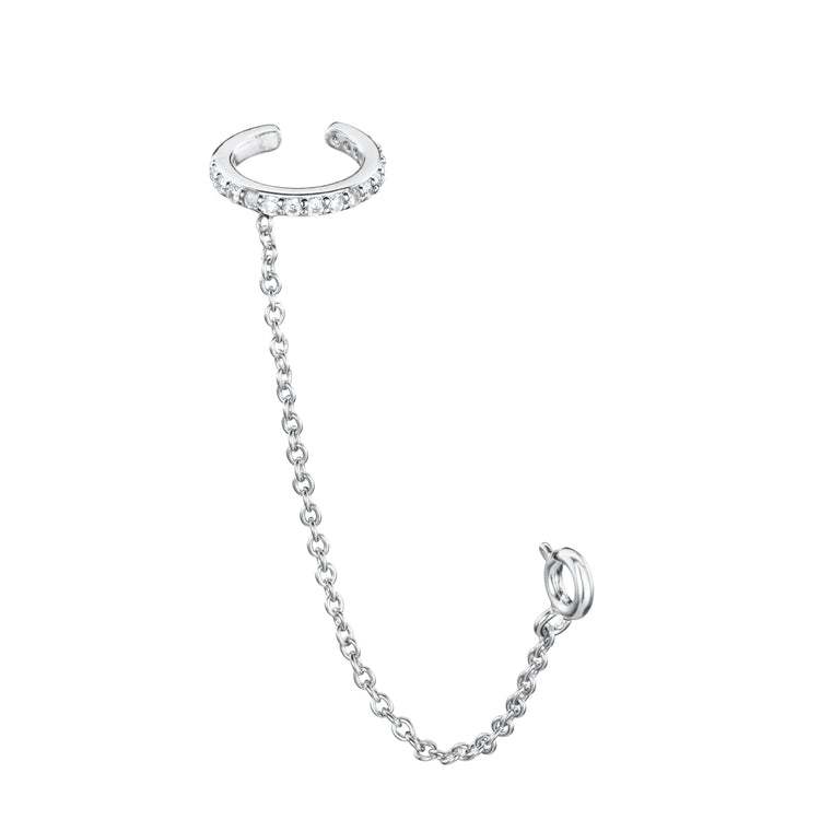 Kitty Crystal Silver Dainty Cuff & Ear Chain
