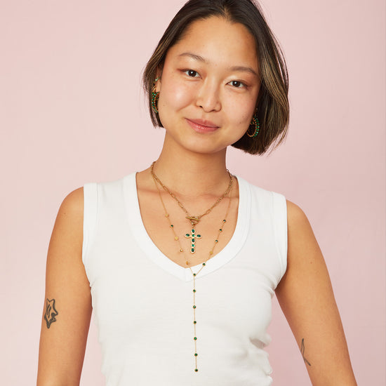 Phoebe Green Gold Cross Pendant Charm