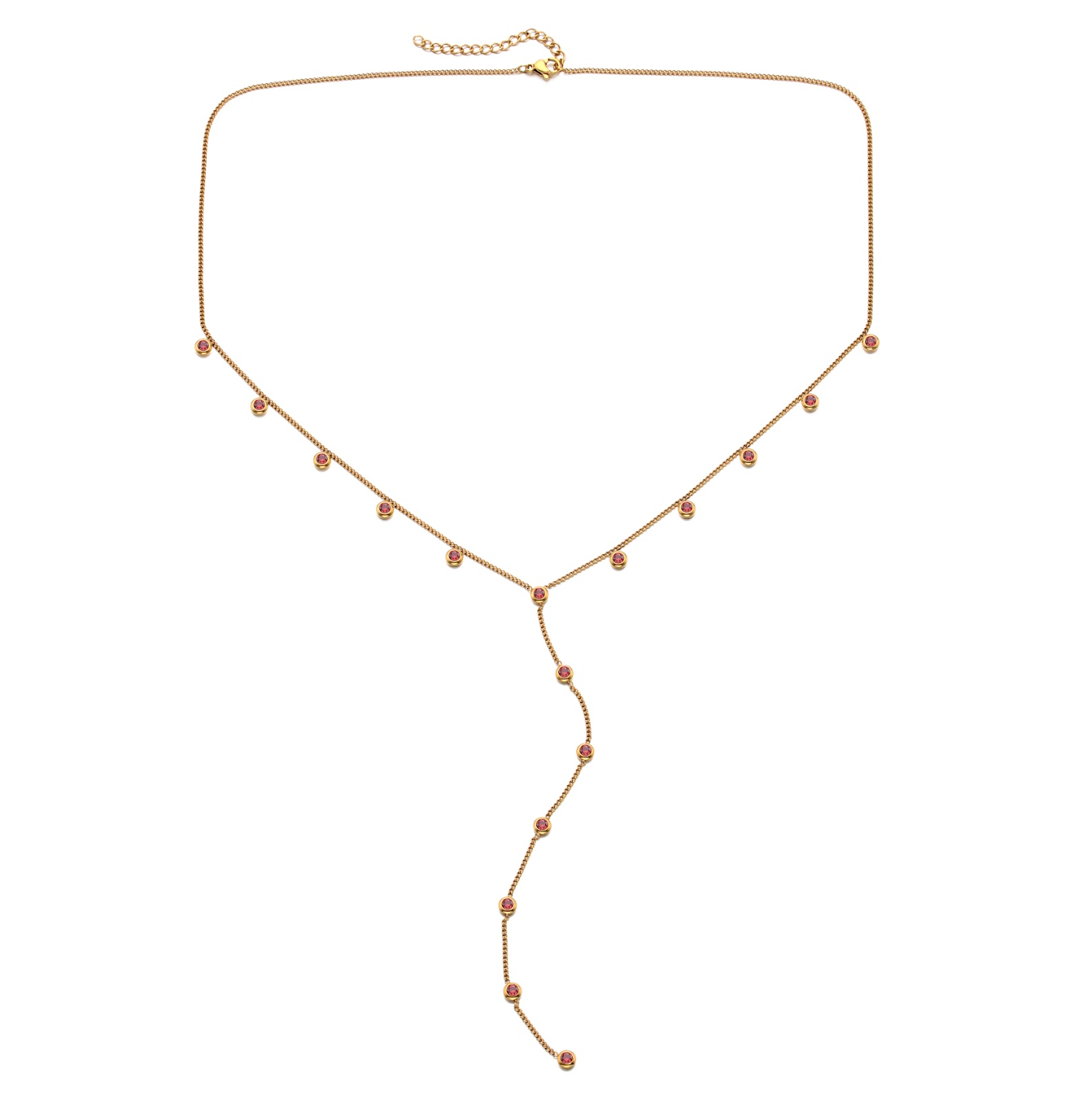 Delicate, elegant, and full of charm, the India Necklace is a refined and relaunched take on our beloved 2024 summer favourite. Featuring a flattering Y-shape silhouette and dainty chain adorned with colourful bezel-set stones, this piece is simple with a statement and the perfect accessory to your outfit.