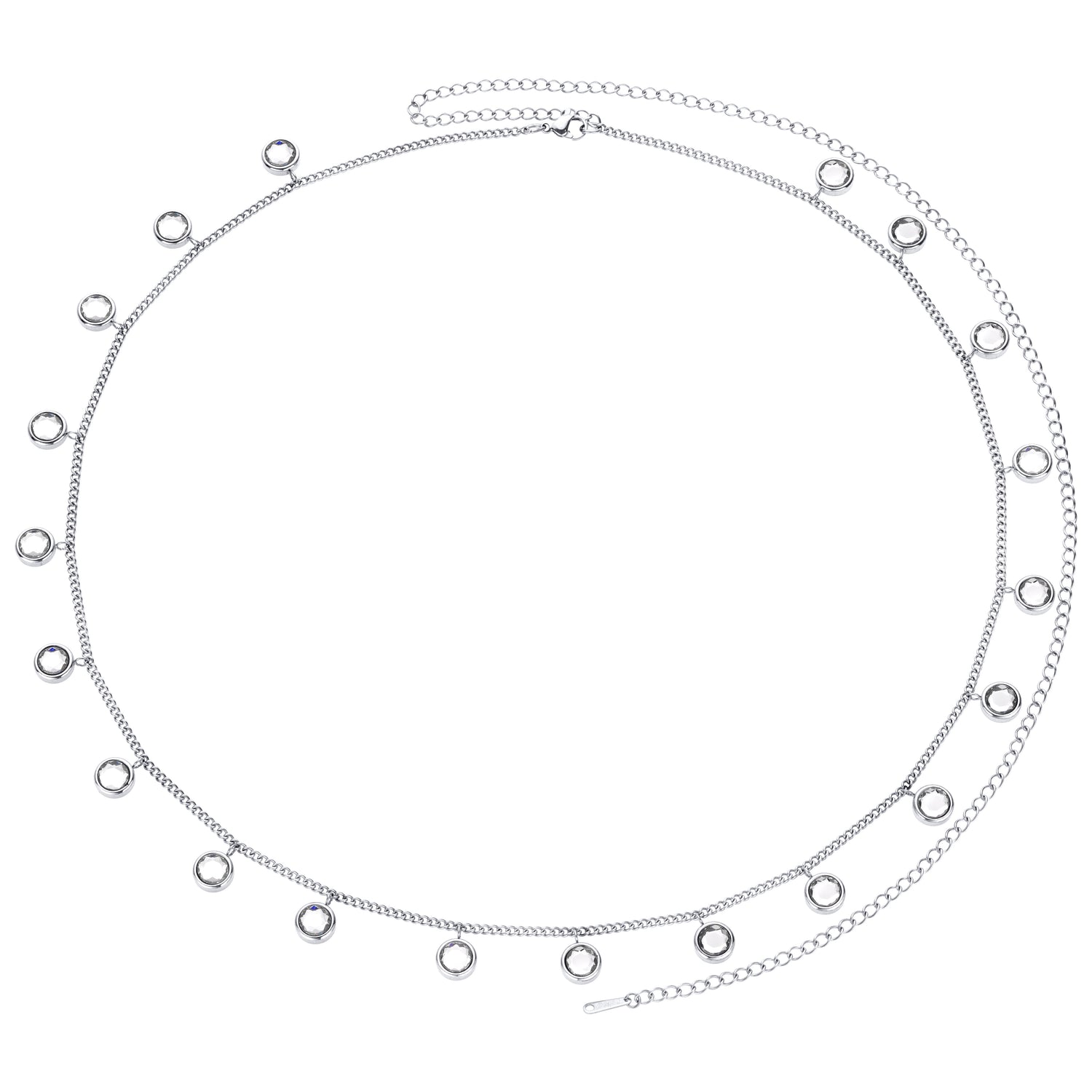 Crafted from stainless steel with a polished 18k PVD gold finish, the Ivy Belly Chain features a single fine chain with bezel set stones spaced all the way around. Each stone comes in one of our iconic colours, giving the piece a bright and playful feel.