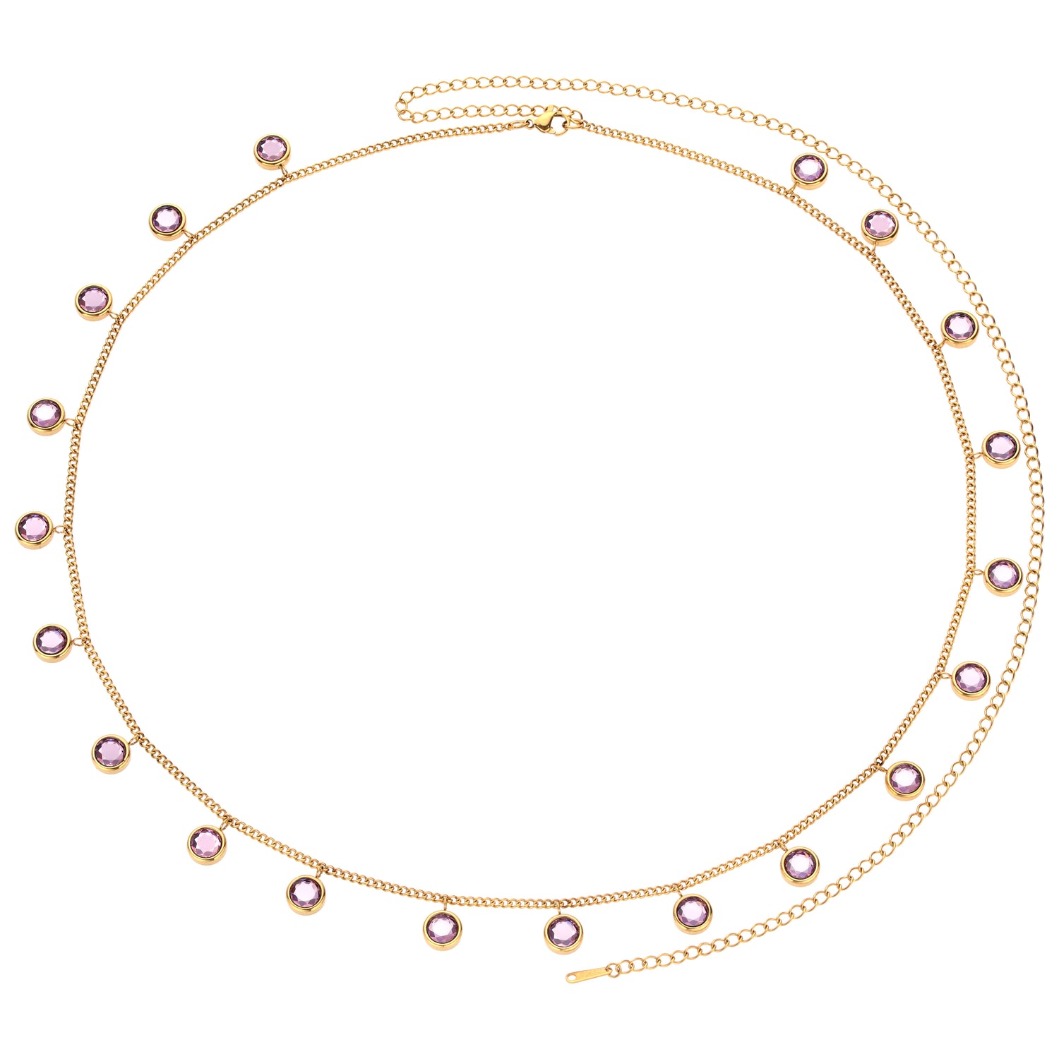 Crafted from stainless steel with a polished 18k PVD gold finish, the Ivy Belly Chain features a single fine chain with bezel set stones spaced all the way around. Each stone comes in one of our iconic colours, giving the piece a bright and playful feel.