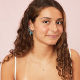 The Iris Waterfall Huggie Earrings bring movement and colour to your stack. Each huggie features four round-cut stones that hang delicately in a cascading drop, catching the light with every turn.