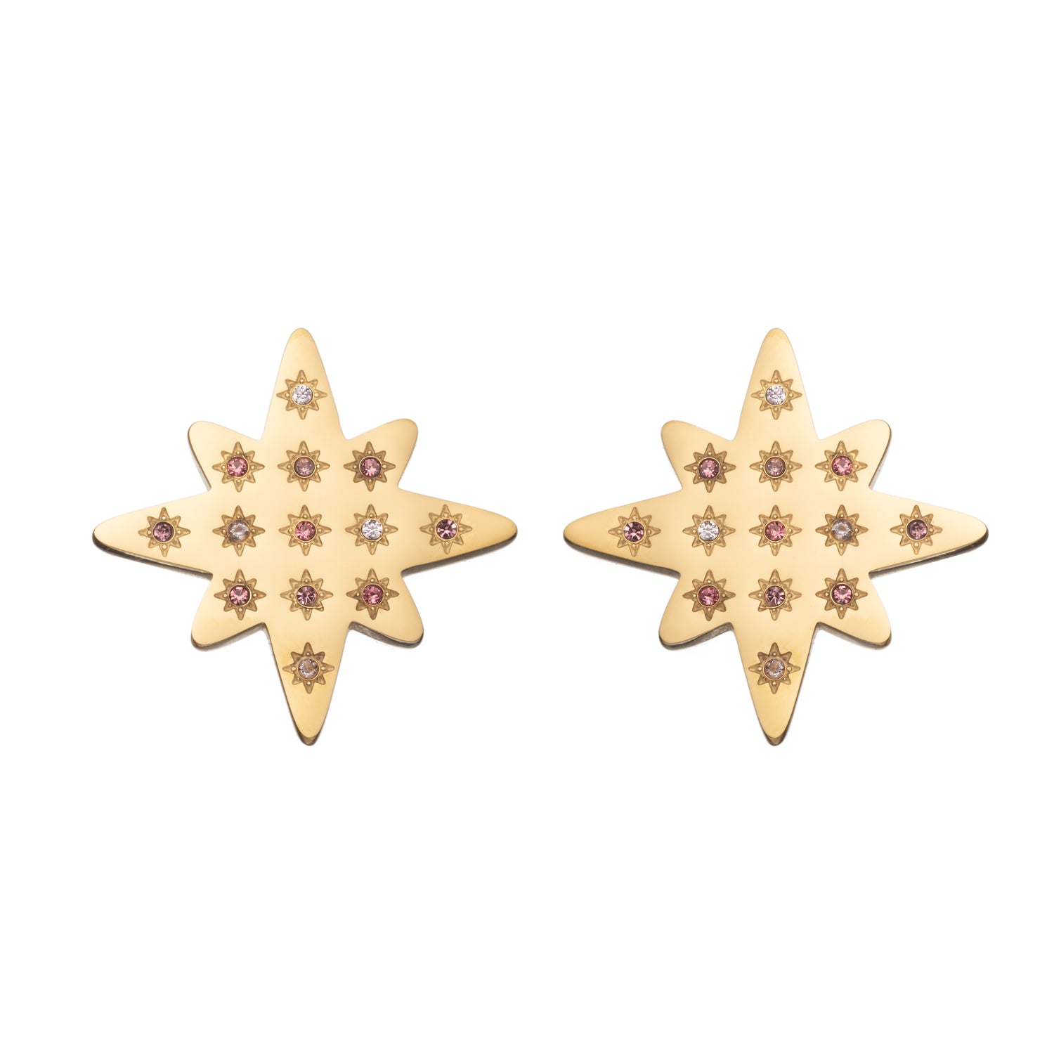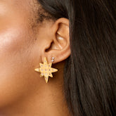 Make a cosmic statement with the Kiki Star Statement Studs, a bold and eye-catching pair designed to turn heads. Featuring a large, structured star silhouette adorned with intricate starburst detailing, these studs bring celestial elegance with a modern edge.