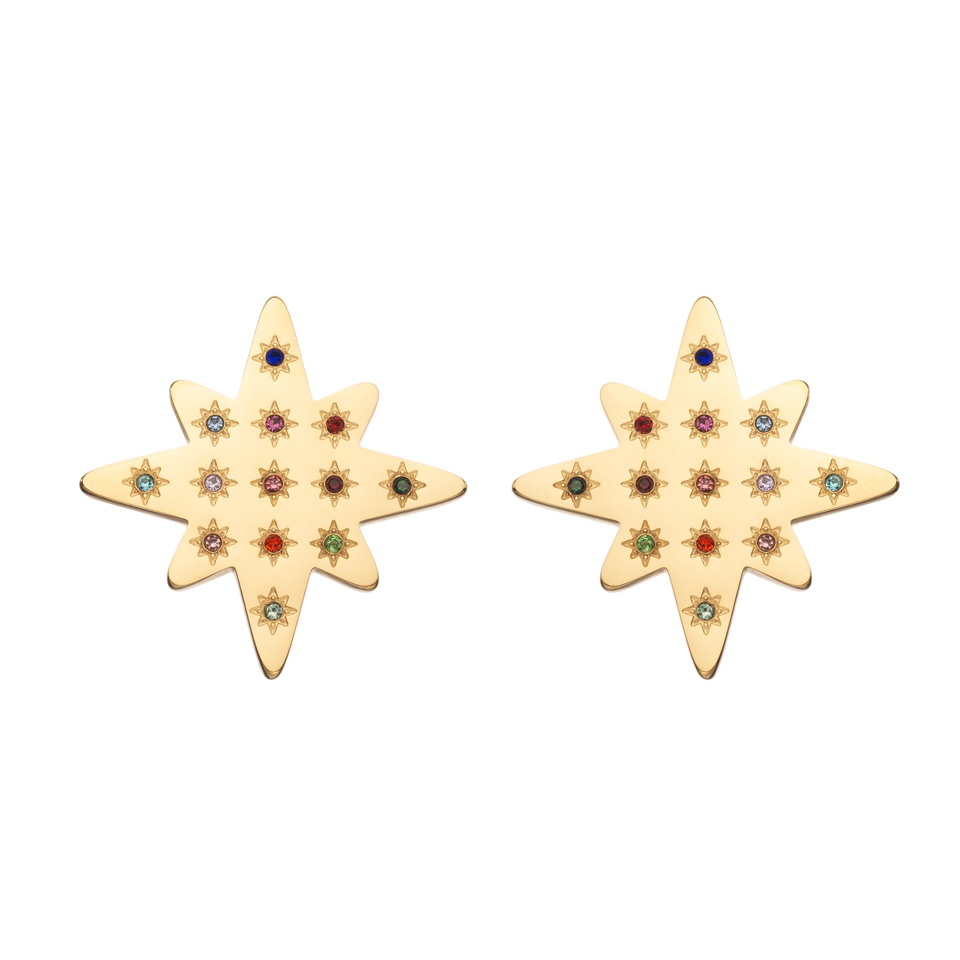 Make a cosmic statement with the Kiki Star Statement Studs, a bold and eye-catching pair designed to turn heads. Featuring a large, structured star silhouette adorned with intricate starburst detailing, these studs bring celestial elegance with a modern edge.