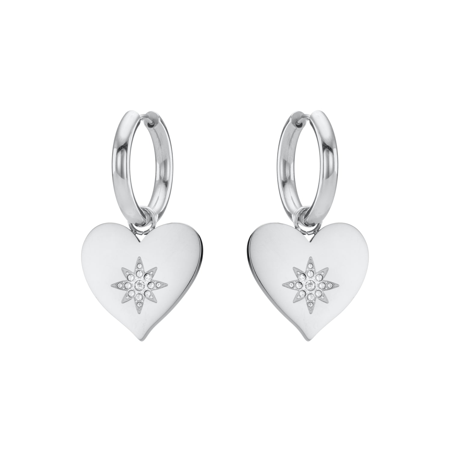 The Lucinda Heart Earrings are the perfect balance of romance and bold style. These statement hoops feature polished heart-shaped charms, each adorned with a starburst of shimmering stones that catch the light beautifully with every movement.
