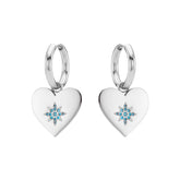 The Lucinda Heart Earrings are the perfect balance of romance and bold style. These statement hoops feature polished heart-shaped charms, each adorned with a starburst of shimmering stones that catch the light beautifully with every movement.