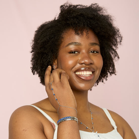 Delicate. Elegant. Unforgettable. The Madeleine Hand Chain is your perfect statement of subtle sophistication. Designed with a dainty bracelet that gracefully connects to a finger chain, she adds a soft shimmer and an ethereal touch to any look. Crafted with an 18k gold-plated finish over a water-resistant stainless steel base, the Madeleine is made to shine, just like you. The adjustable fit ensures she sits just right, offering comfort and elegance in one seamless design. Please handle it with care. Due to her delicate nature, Madeleine should be treated gently. She’s resilient, but not meant for tugging, avoid pulling or yanking to keep her beauty intact.