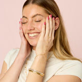 A sparkling customer favourite. The Martha bangle features an all-over bezel-set crystal design for that high-shine, luxe look. Crafted from 18k PVD electroplated stainless steel, it’s water-resistant, hypoallergenic, and made to last through everyday wear. Wear it solo for subtle sparkle or stack it up with our iconic bangles and handchains for a bold, radiant vibe. Either way, Martha brings effortless elegance to your collection.