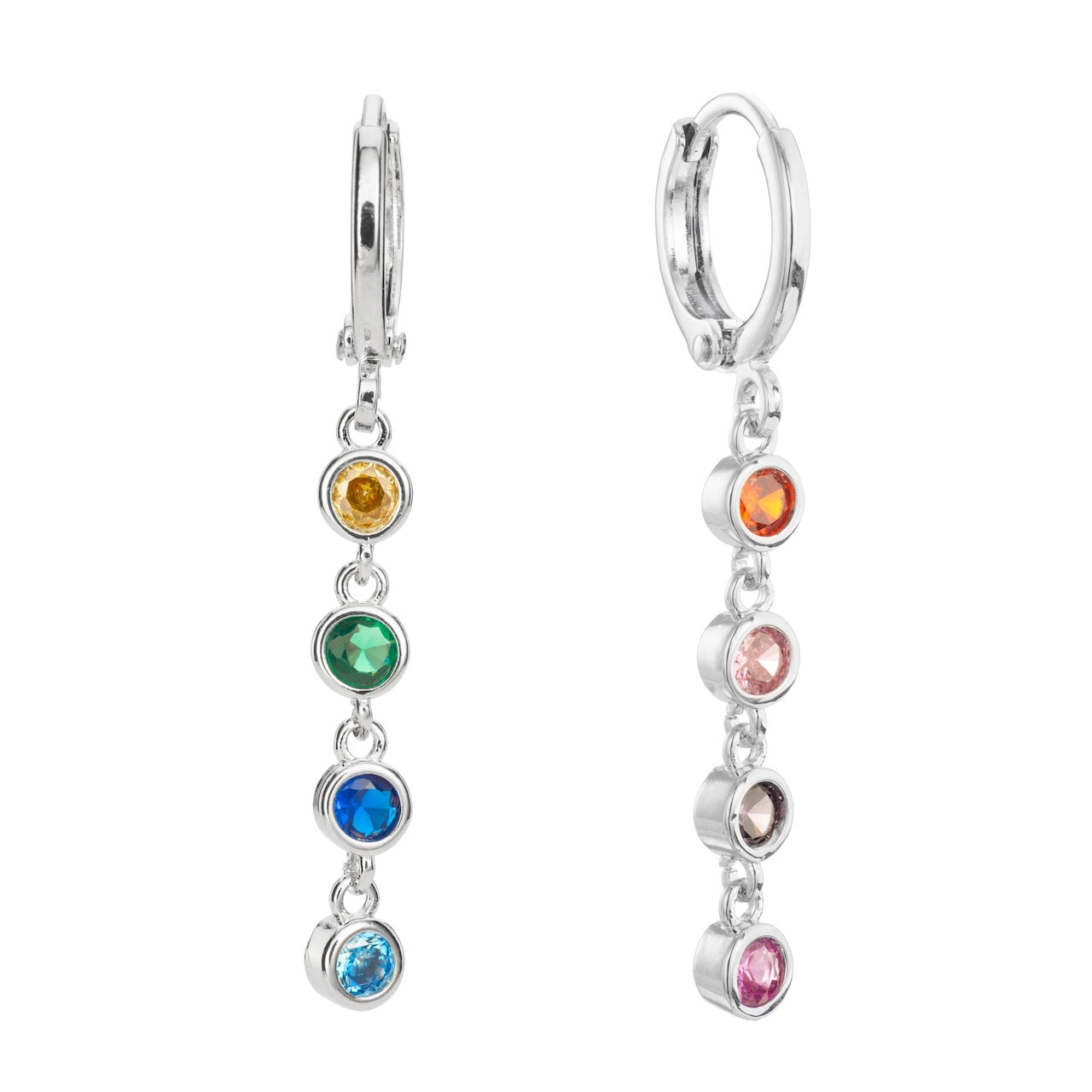 Ellica Silver Rainbow Droplet Huggie Earrings