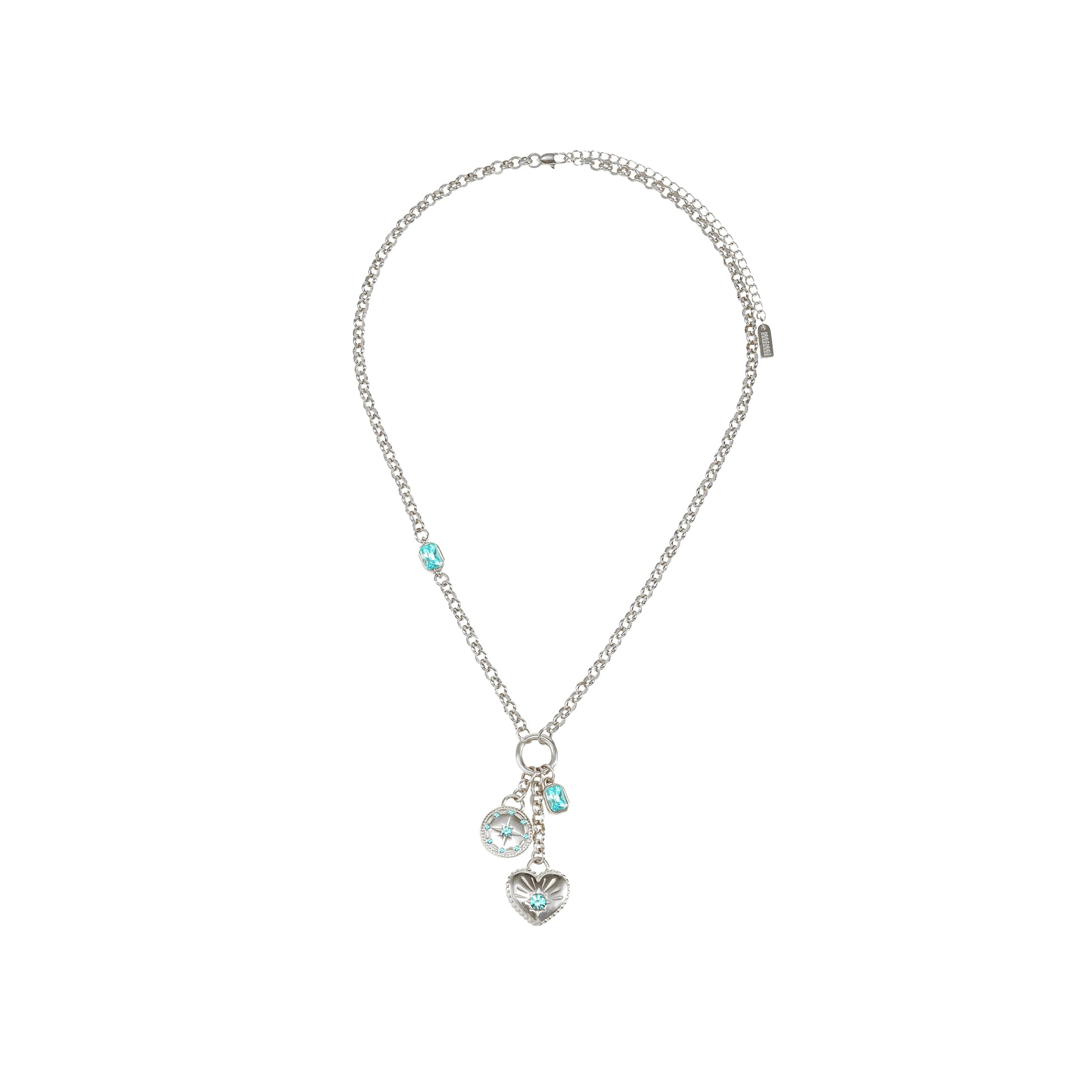 A detailed charm necklace featuring a selection of celestial and heart-shaped charms. This piece is designed with vibrant stone accents set against a polished metallic finish, offering a layered aesthetic in a single necklace. Crafted from high-grade stainless steel, it is fully waterproof and tarnish-resistant for enduring daily wear.