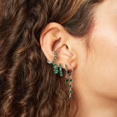 The Ellica Droplet Huggie Earring is one of our iconic best sellers, loved for its sleek design and subtle shine. Featuring a smooth gold huggie with five bezel-set crystals that drop gently in a row, it adds movement and a hint of colour to your look.