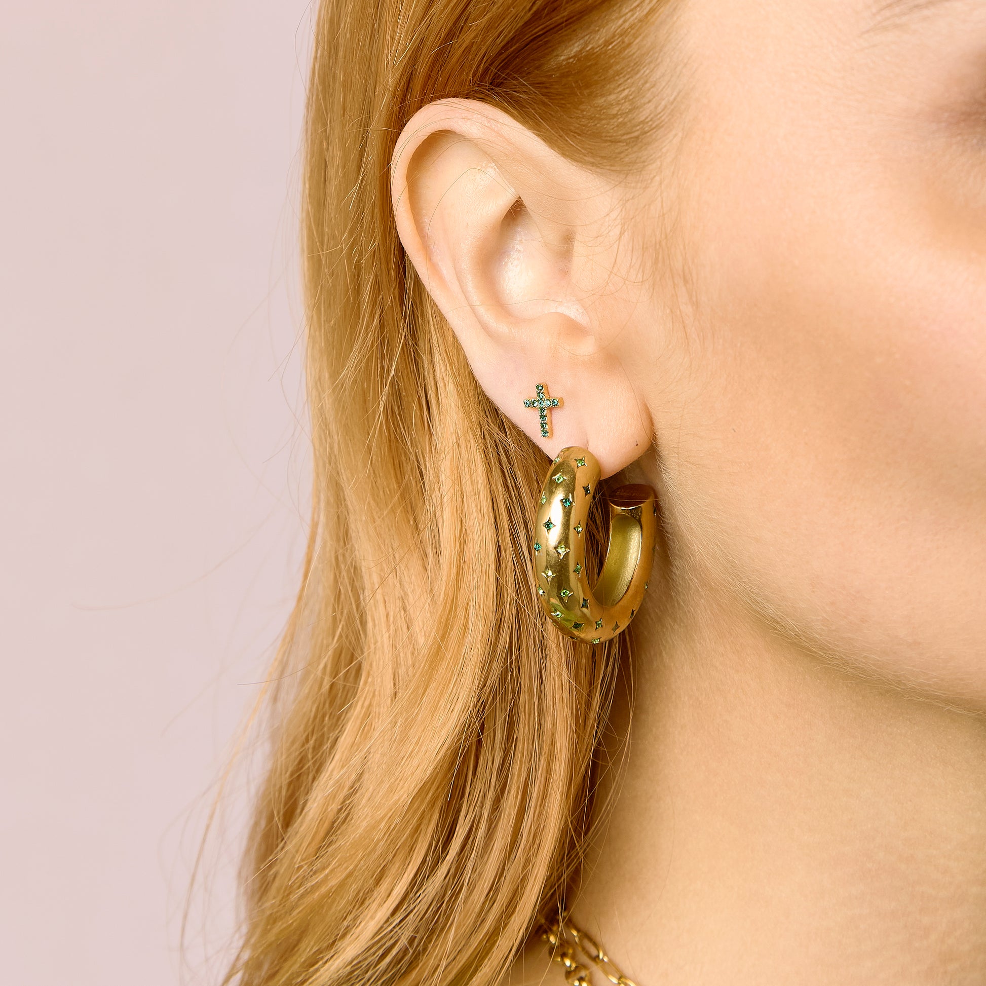 Petra Gold Multi-Green Chunky Star Hoops