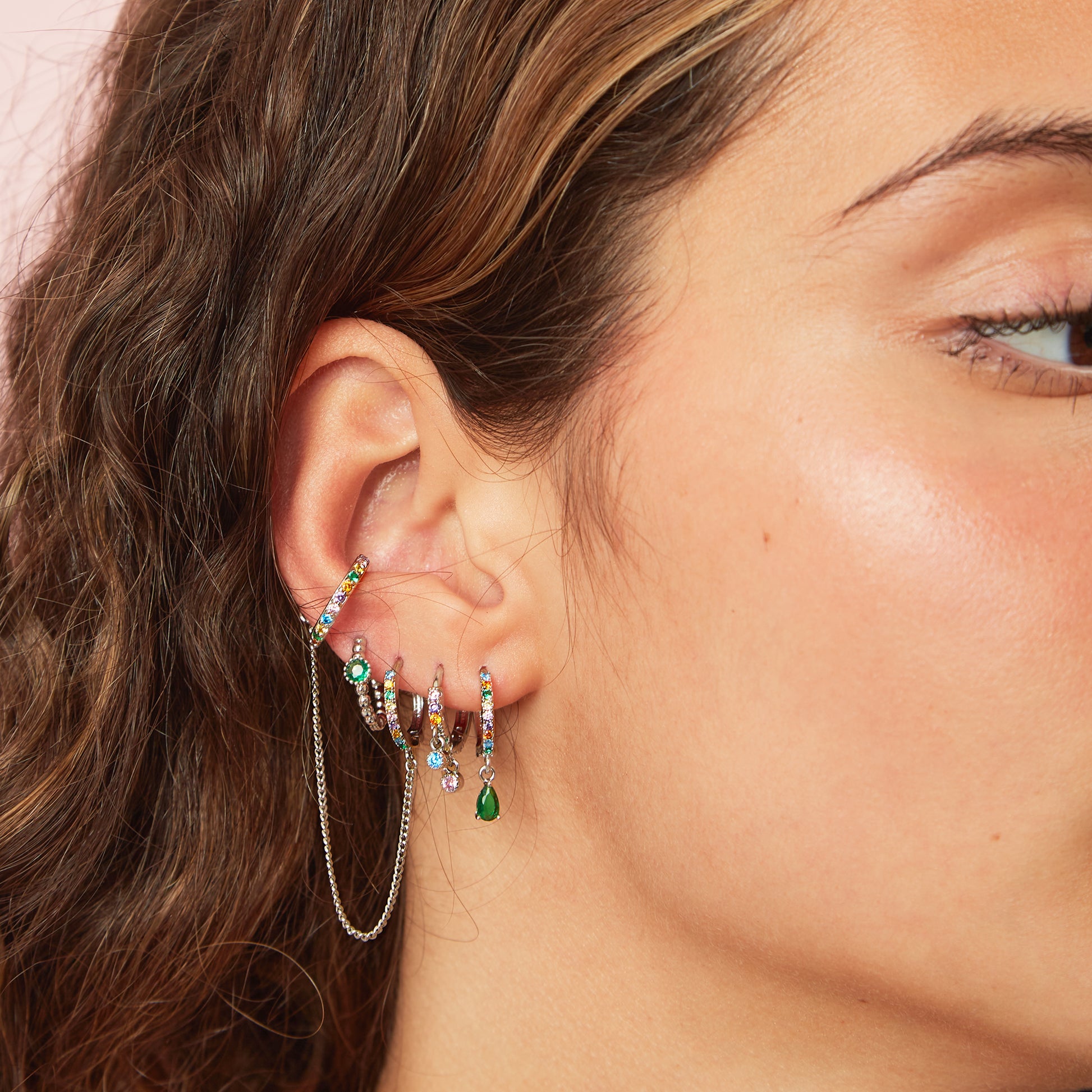 Anna Silver Rainbow Huggie Earring Stacker Set