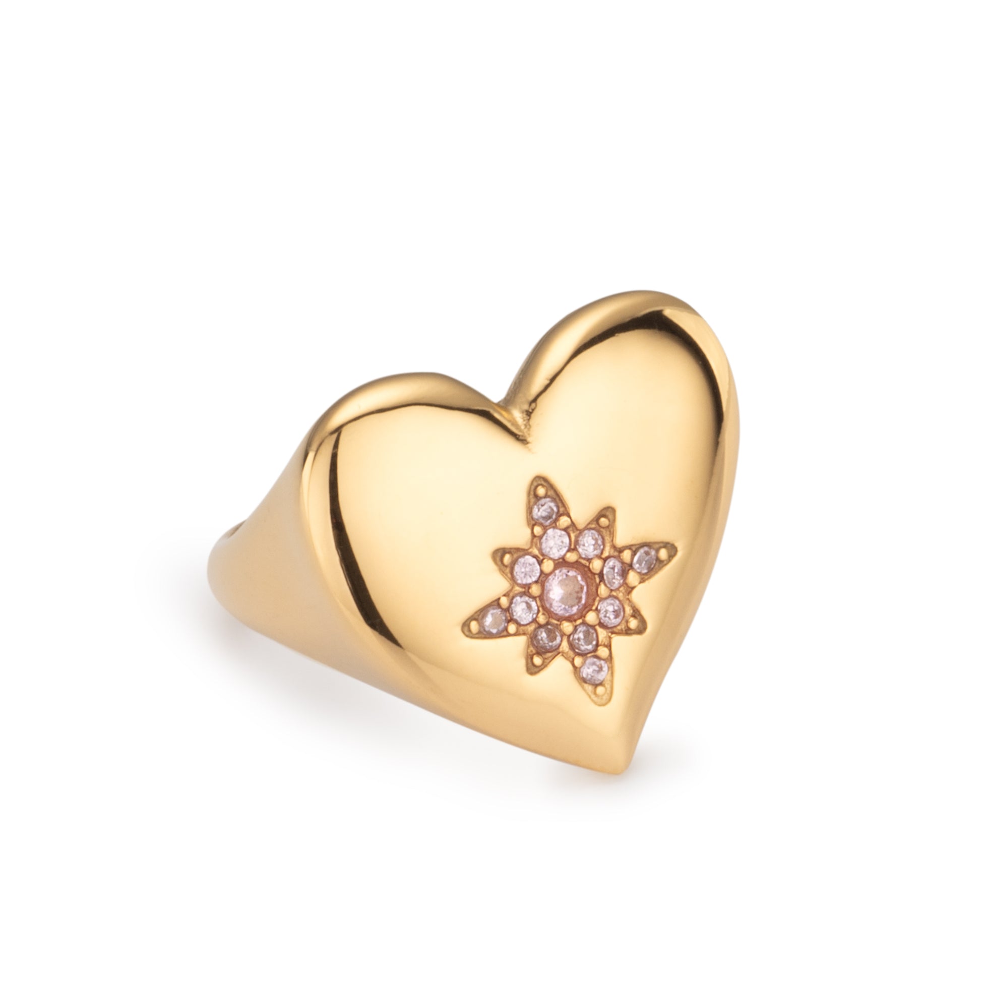 Ruby Gold Pink Chunky Heart Ring SIZE N