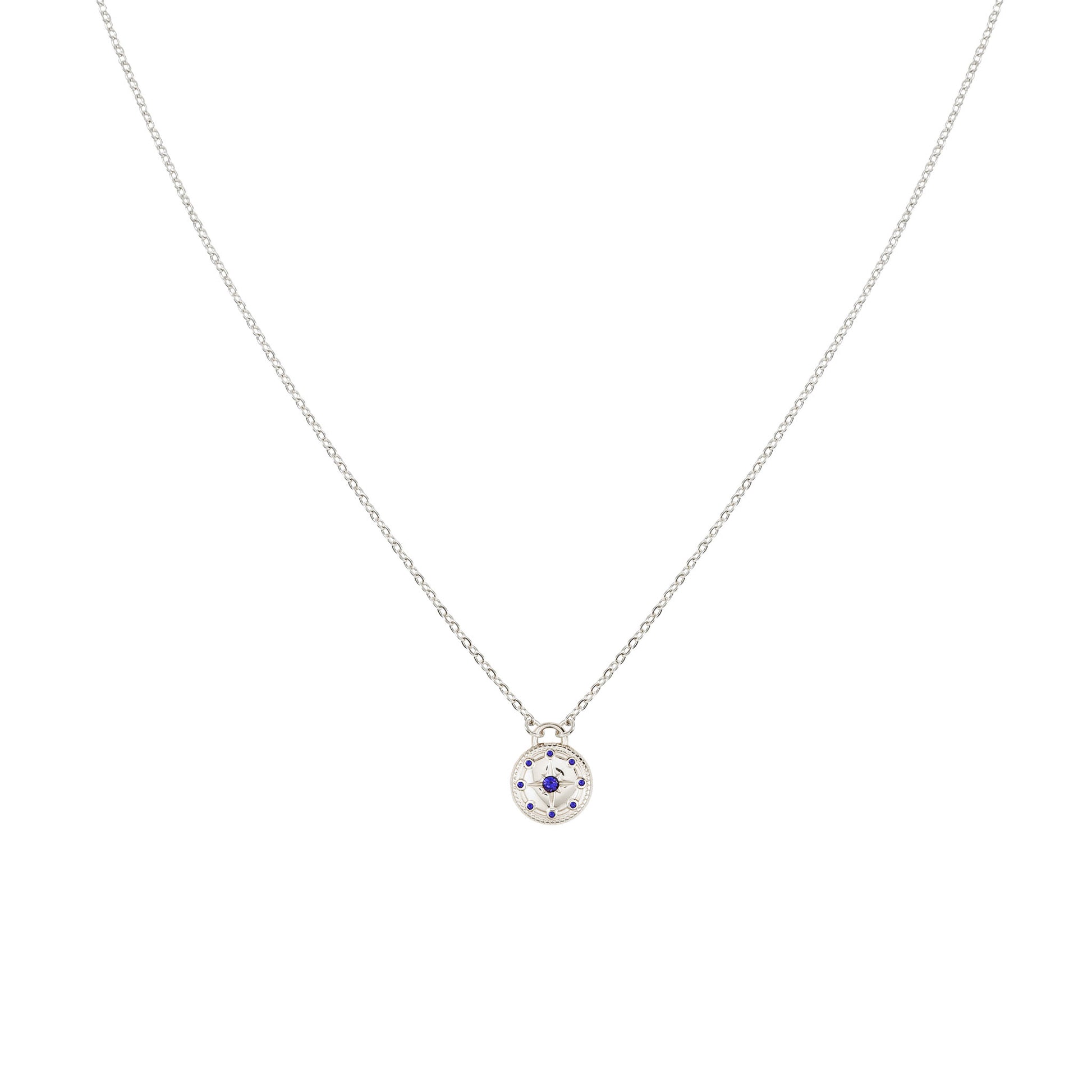 A delicate fine-link chain featuring a circular compass-inspired pendant with a central stone inset. This piece is designed for a minimalist look, accented by detailed engravings and a polished metallic finish. Crafted from high-grade stainless steel, it is fully waterproof and tarnish-resistant for enduring daily wear.
