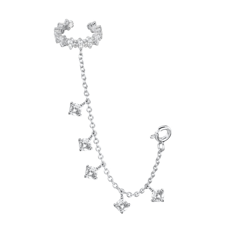 Millie Silver Crystal Chunky Ear Cuff & Droplet Chain